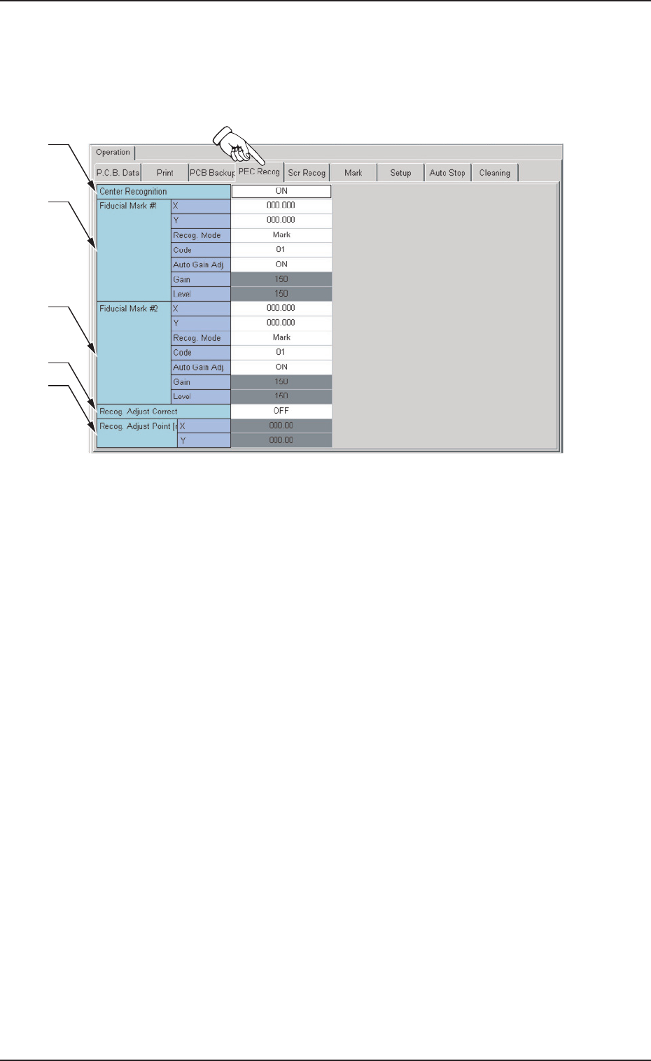 按“Operation( 操作数据 )”选项卡的 [PEC Recog( 线路板识别 )]Tab,