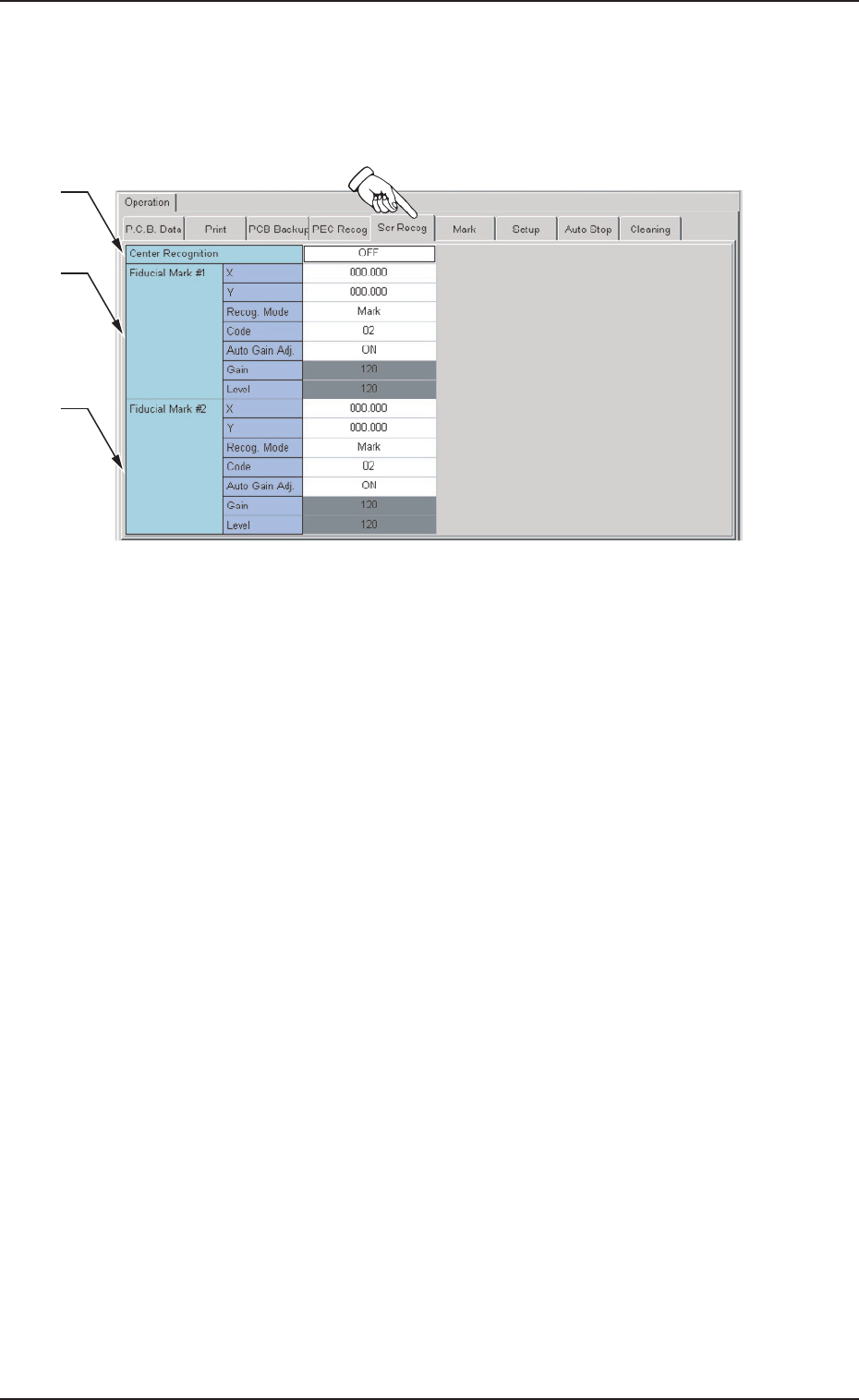 按“Operation( 操作数据 )”选项卡的 [Scr Recog( 丝网识别 )]Tab,