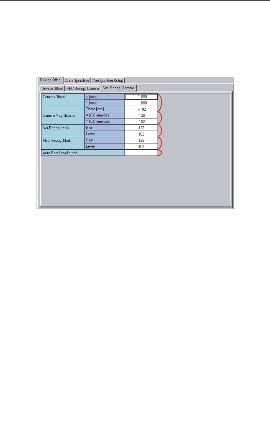 Fig.E16 “Scr. Recog. Camera( 丝网识别照相机补正值 )”选项卡