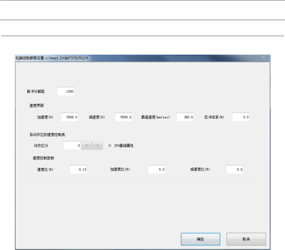 机器控制参数 2- 13 设定项目 2-1-5- 1 No. 项目 输入范围 单位 备考 最小值 最大值 1 脉冲分解能 1nm/Pulse 2 速度界限 加速度 -10 10 G 3 减速度 -10 10 G 4 最高速度 -1000000 1000000 mm/sec 5 反冲击率 6 各动作区的 速度控制表 动作区分 0 2 参照 2-1-5-2 动作 区分 7 速度区分 0 9 参照 2-1-5-3 速度 区分 8 速度控 制参…