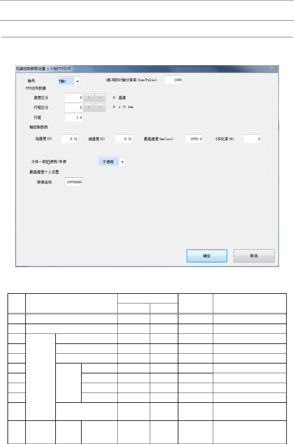 如将“轴号”、“速度区分”、“行程区分”设置为欲编辑的索引,即可对所设定的区分中的轴控