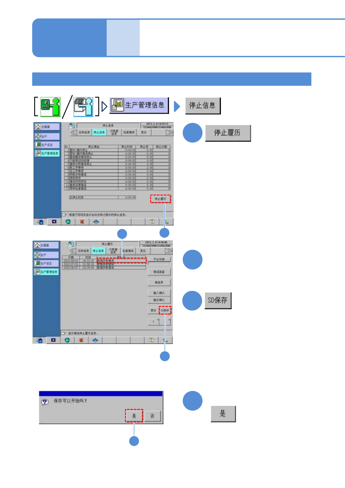 SPG EJP6AC-MB-0 2TS-01 3 2 错误履历的保存方法 3 ( 错误履历将保存进 SD 卡 ) 选择需要获取的错误项目 故障排除篇 2-2 获取错误记录的方法 5 4 4 确认信息后,单击 2-2 -9 ■保存进 SD 卡的方法 1 1 2