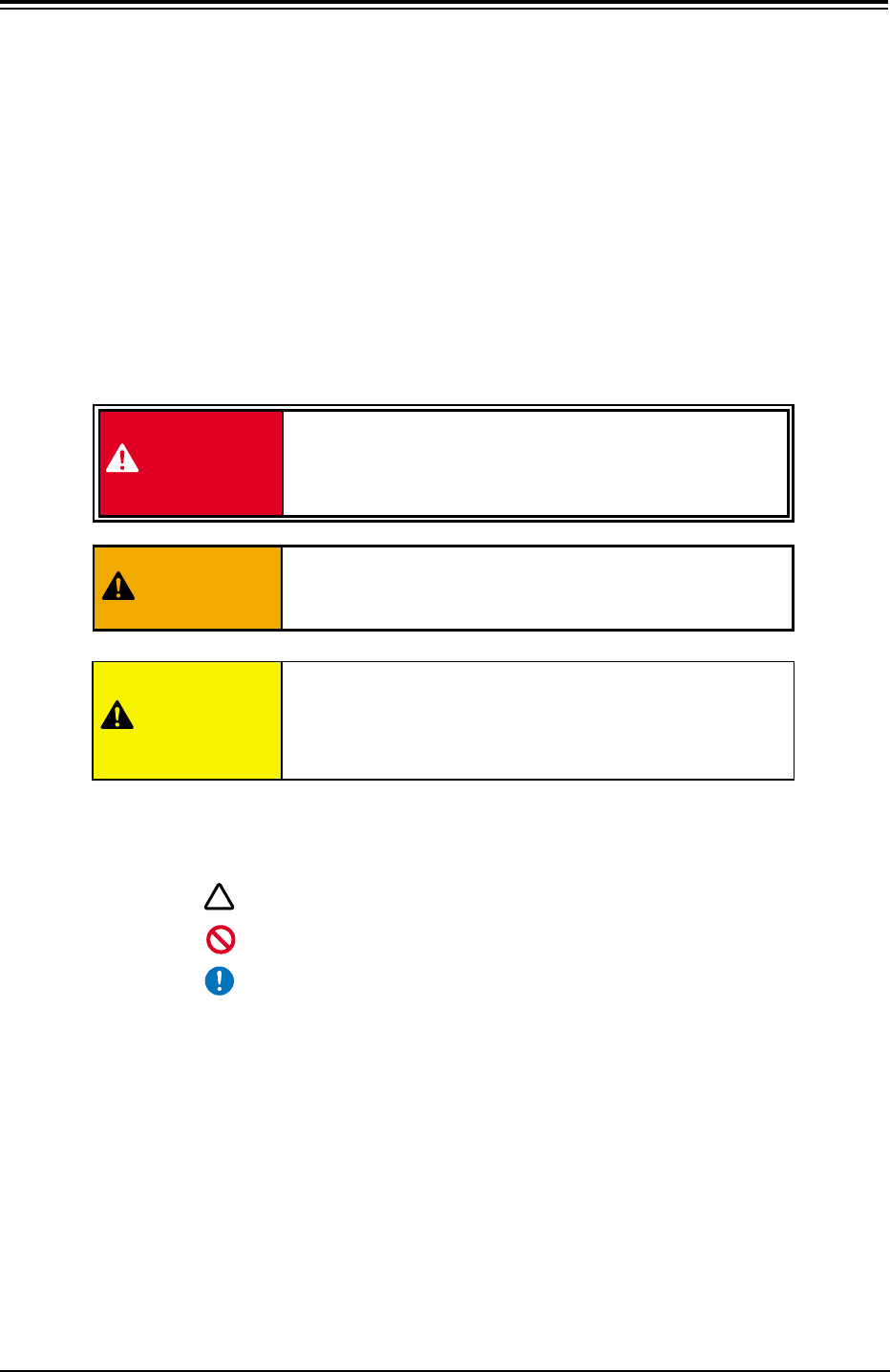 • The following warning signs are classified into three categories ac-