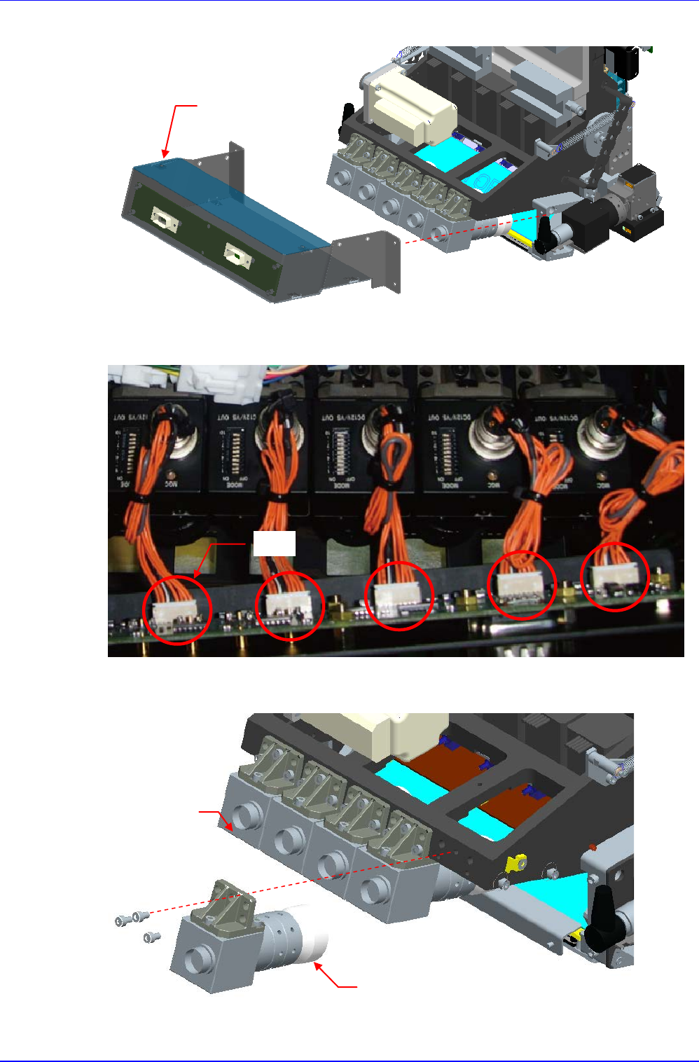 SM471 Service Manual 16 4.4.2. Flying Came ra 4.4.2.1. 必要工具 T W renc h ( 其他 提供工具 ) or Hex Wrench 扳手 or 力矩扳手 4.4.2.2. Flyi ng IO Board 更换步 骤 1. 操作示教框,让贴装头 模块移动到正面。 2. 正常结束 PC 后,关闭 ( OFF) 设备正面的主开关 (Main Switc h) 。 3. 拆…