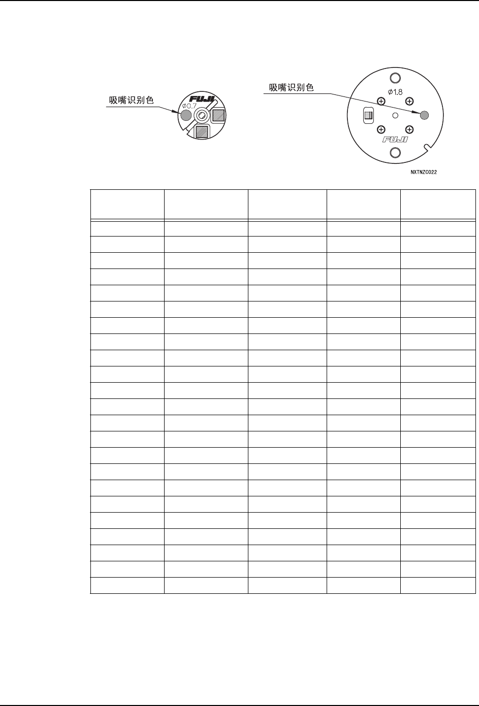 所使用的吸嘴种类如下。请通过涂敷在法兰盘上的颜色来识别各个吸嘴。