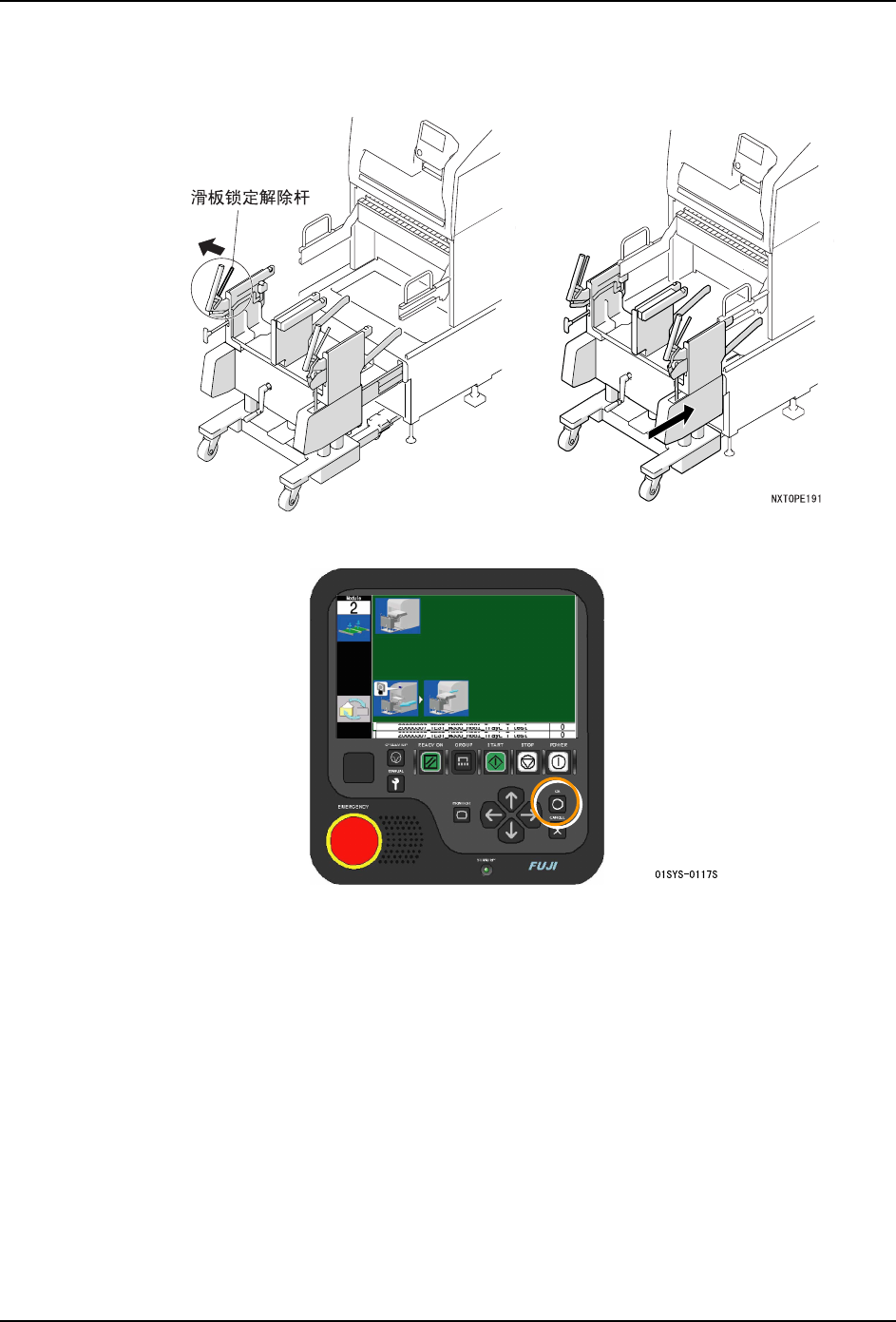4. 请按下 OK 按钮。料站托架被松开。