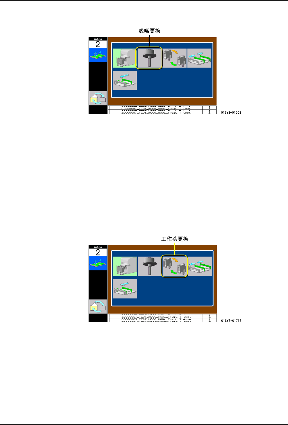 1. 使用光标键,选择吸嘴更换示意图,按下 OK 按钮。