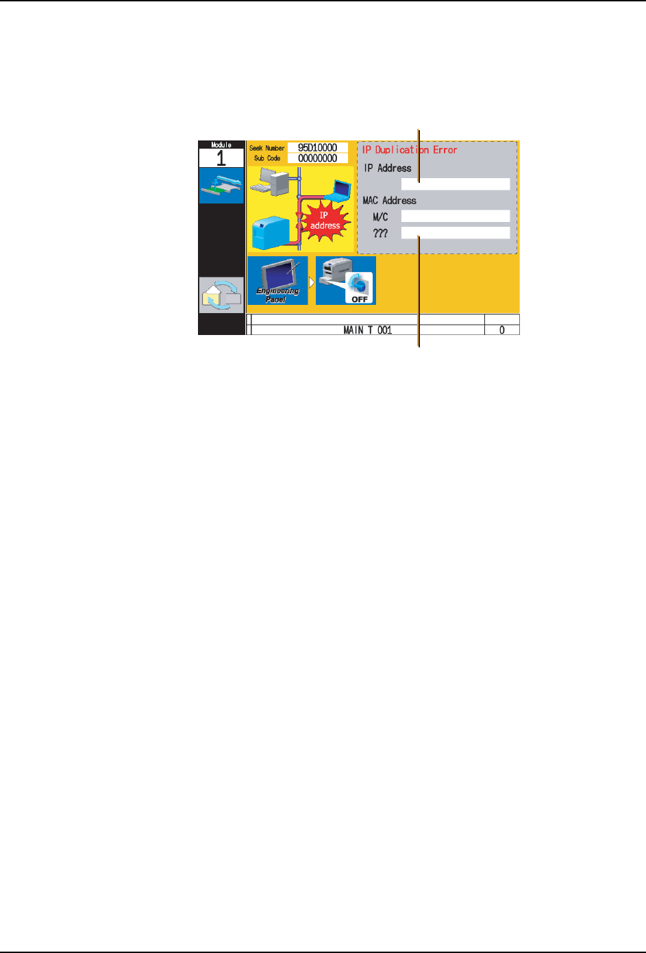 所设定的 IP 地址在网络上被重复使用的时候,会显示出错误警告画面。在运转中,NXT 会