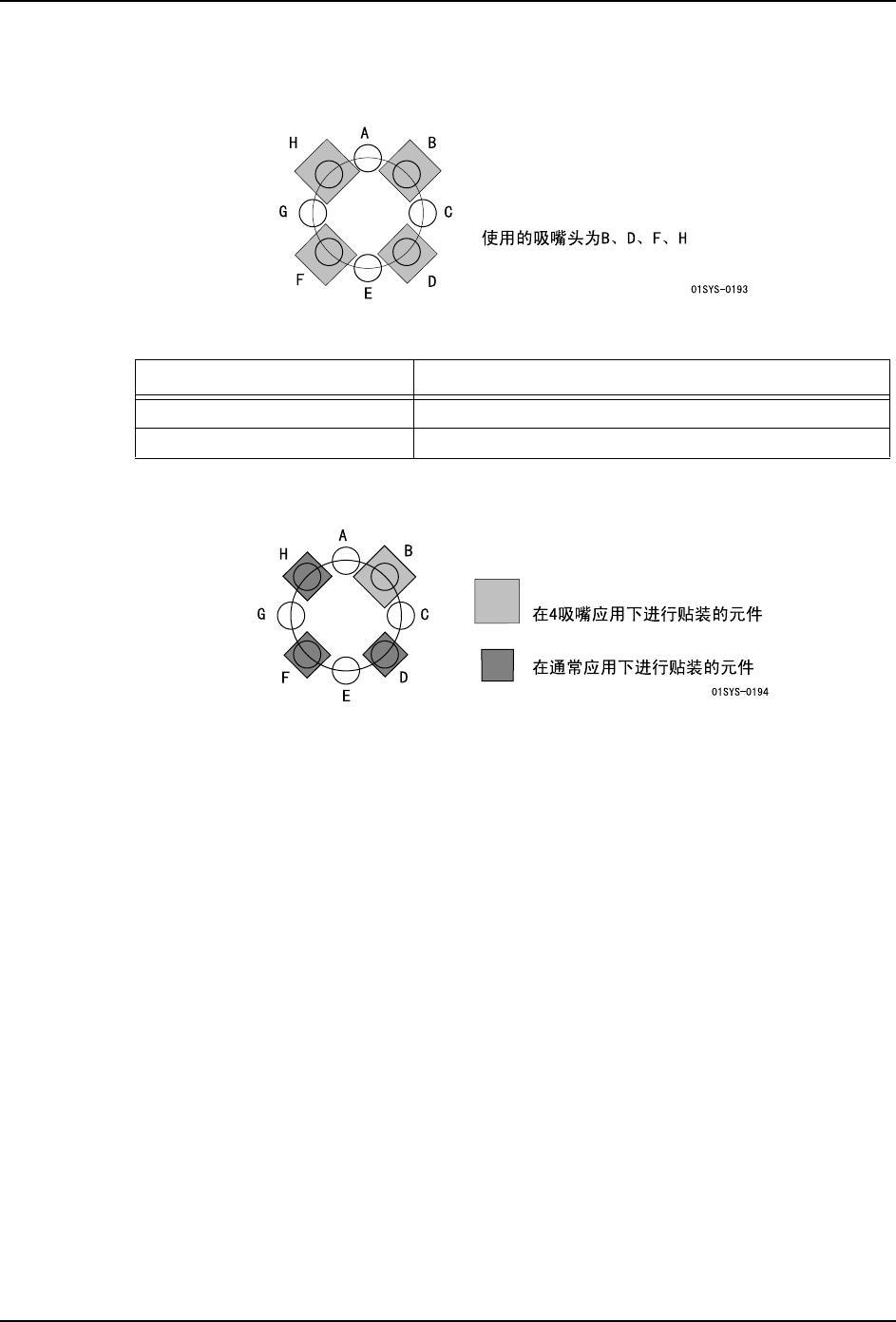在 4 吸嘴应用中使用的吸嘴头固定为 B、D、F、H。如果将这些吸嘴头设定成吸嘴头跳过,就