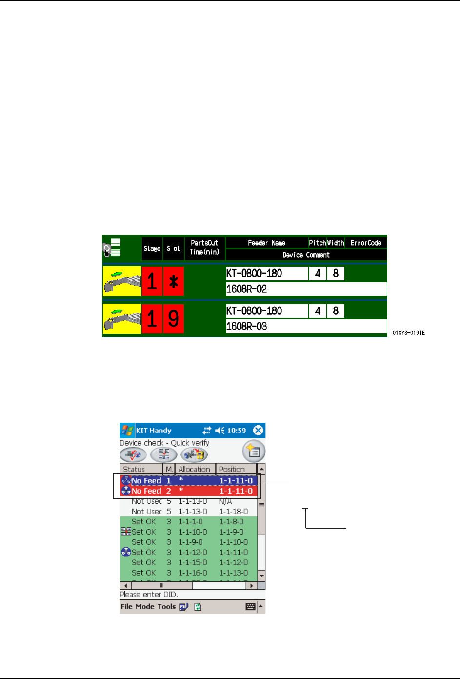 操作画面上进行确认。一边进行快速验证一边安装供料器时,请在 KIT Handy 或 KIT Manager