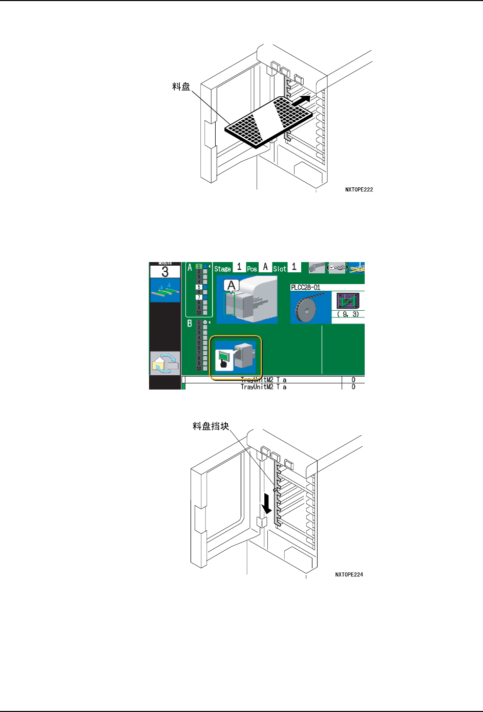注意 ) 在将料盘放置到料站时,请轻轻放置以免产生冲击。另外,请不要使料盘接触到料站最里面的