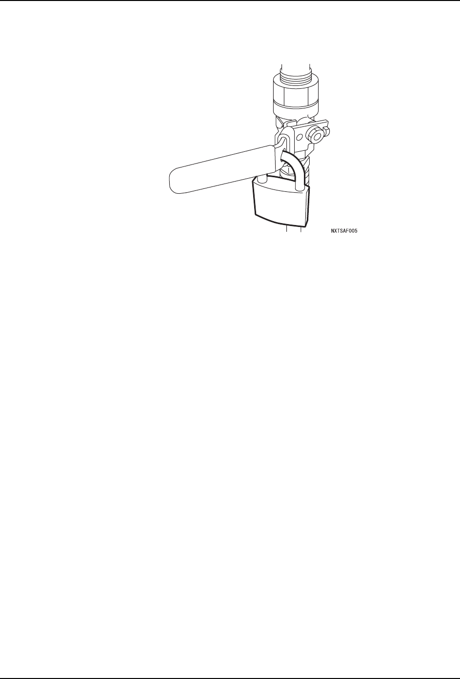 QD027-17 1. 安全指南 NXT 系统手册 17 4. 同样将空气阀手柄旋转至 OFF 位置,锁上荷包锁。 锁紧的荷包锁上贴有写着开始操 作的各个操作人员名字的标签。 5. 到此为止闭锁的操作结束。