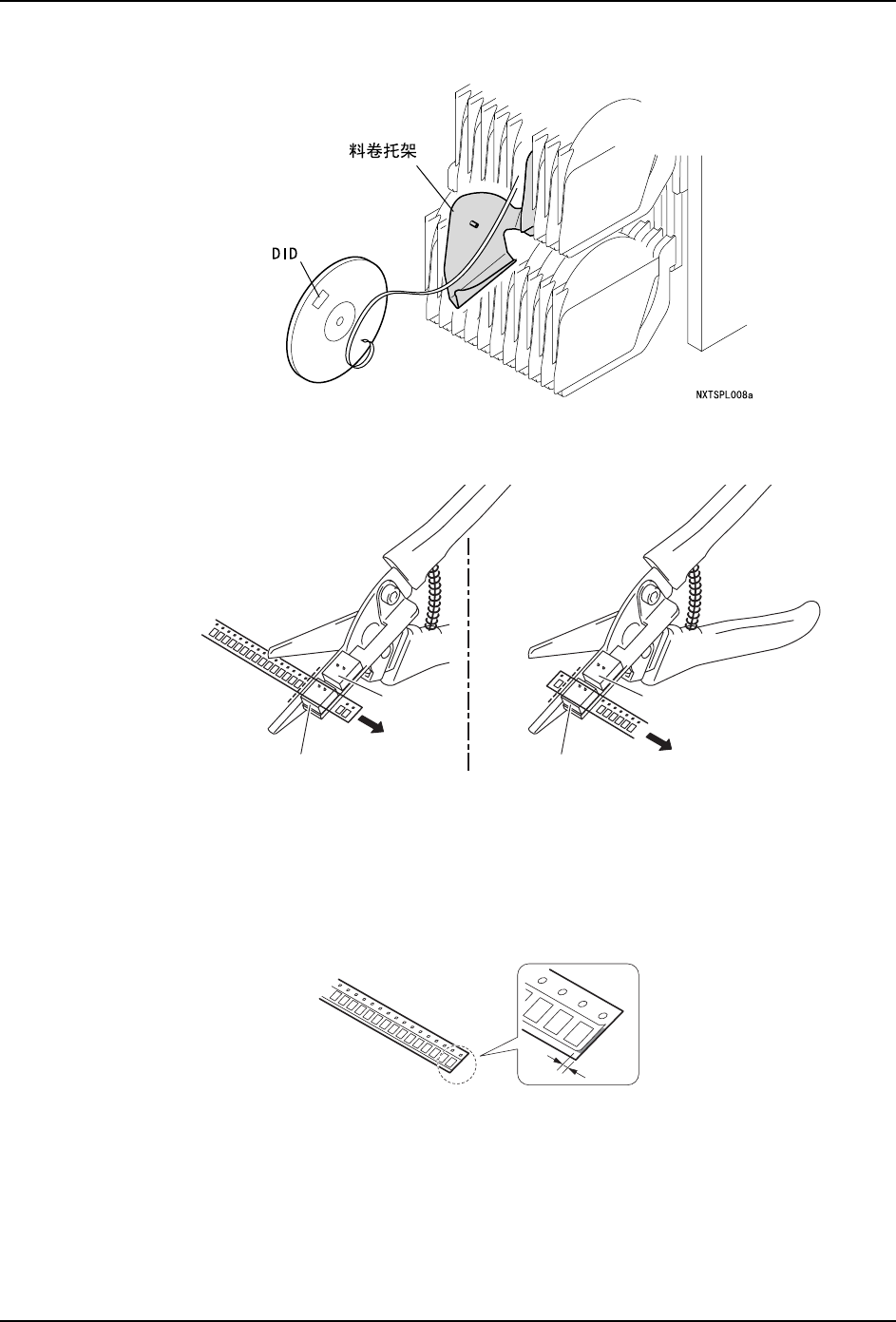 13.使用料带拼接剪刀,在料带最后元件的后方与料带间距相吻合的适当位置上剪断料带。