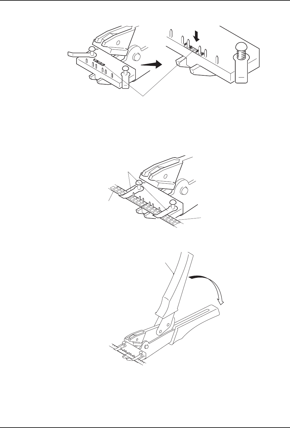 21.使用在料带拼接工具上的销。将料带拼接表面薄膜与拼接的料带的孔相吻合并覆盖在接