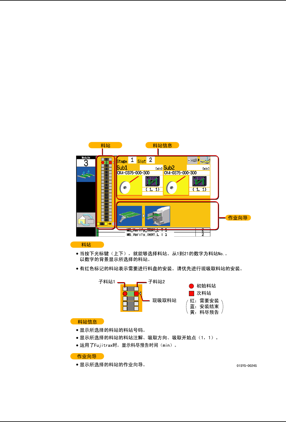 在生产中,当料盘元件用完时,机器会暂时停止运转并显示料尽向导画面。请根据操作画面