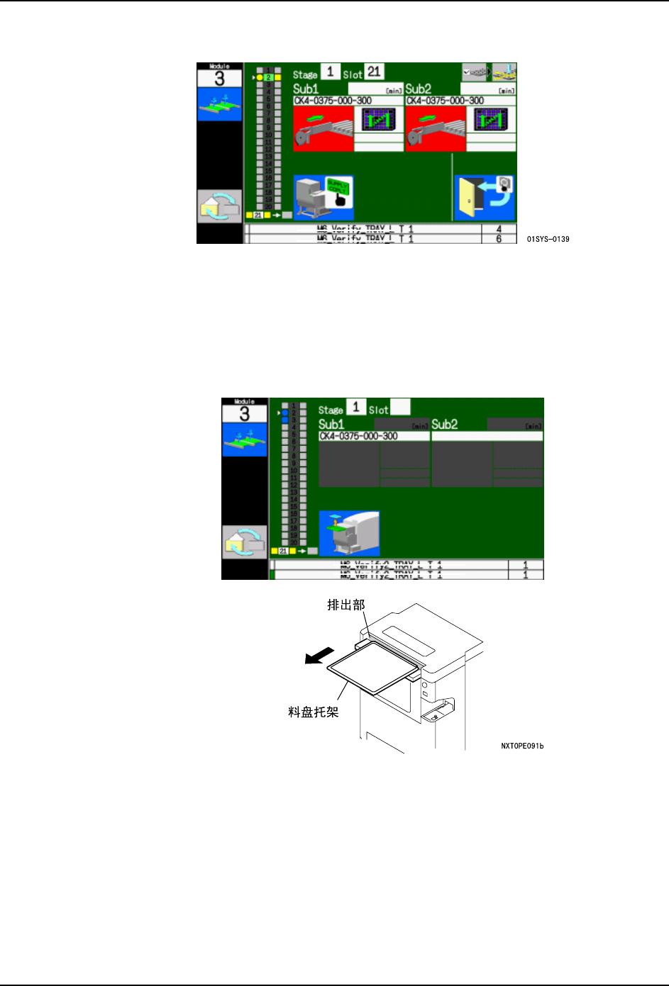 4. 生产 QD027-17 68 NXT 系统手册 5. 将供应部复原后,画面就会改变。 注意 ) 供应部返回后,机器对被设置的料盘内的元件高度进行检查。 6. 需要返回到料盘补充向导时,请按下操作 面板的 OK 按钮。当按下 SUPPLY COP LT 按钮后 就会完成料盘的设置。 7. 在这之前, 料盘单元 -L 内的料盘继续进行元件的供应。 当料尽时, 料盘托架就会移动到 排出部, 因此请打开门回收料盘托架。 (在附加 软件的 …