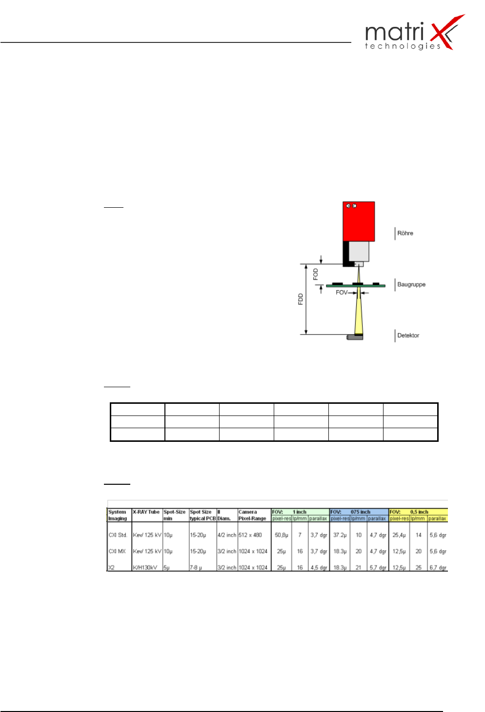 Table 1: Max. FOV-Geometries