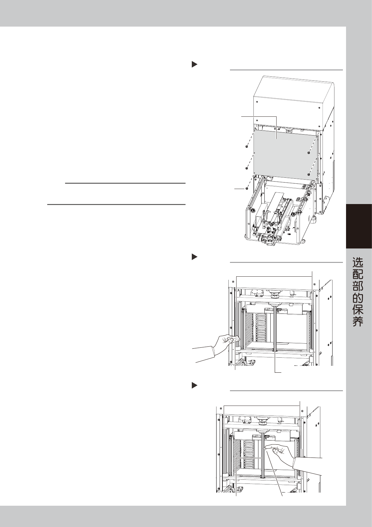 滑轨部有尘屑或异物时,需使用吸尘工具等清除。