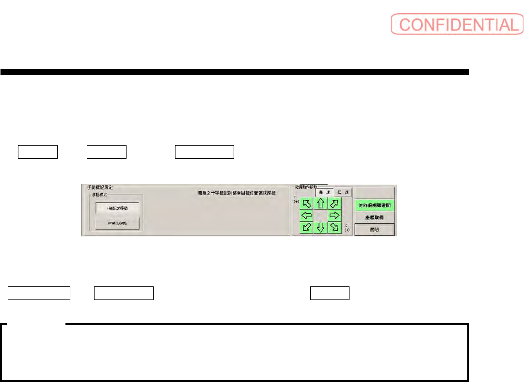 X Y 轴的移动以及 + 标记的移动,在定位标记位置移动十字标记, 用坐标取得键输入定位标记位置的坐标。