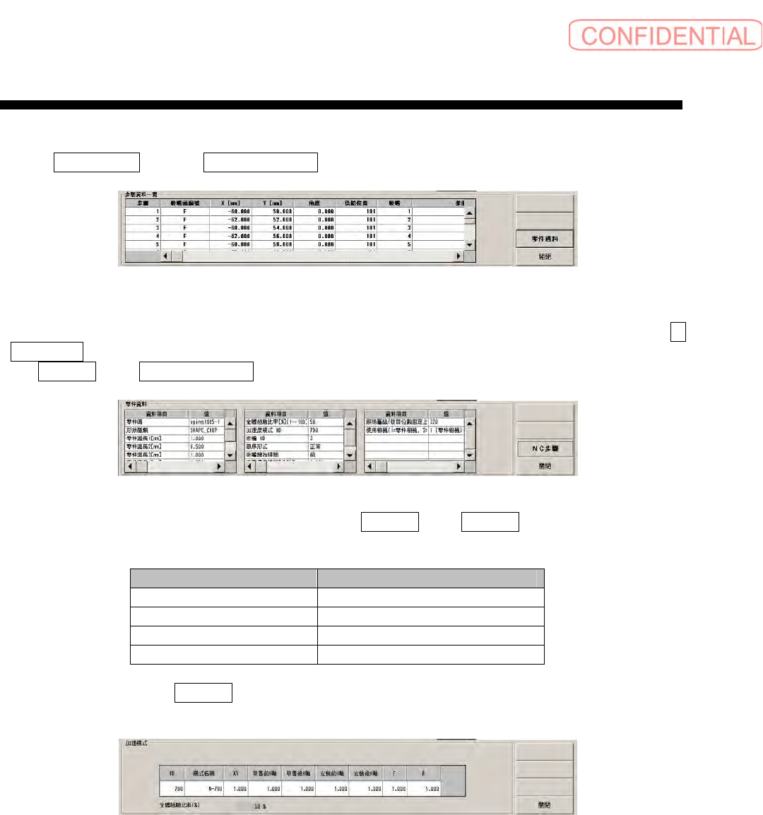 显示步骤资料一览中当前下载的机种数据信息、零件数据中用步骤数据一览所选择的零件信息。此时,点击详