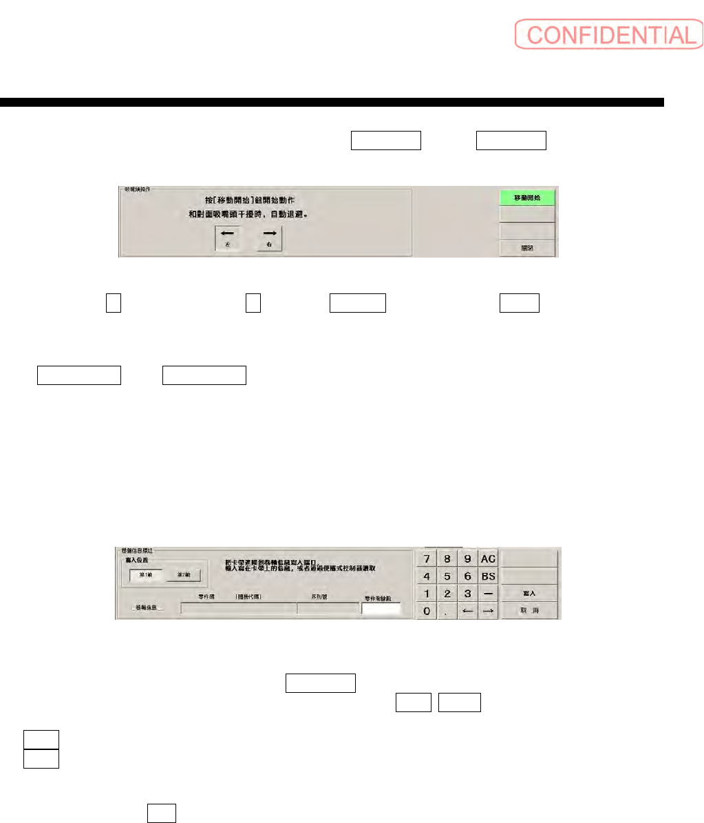 向左移动时点击左健、向右移动时点击右健,再点击移动开始,然后操作屏幕上 START 的,将吸嘴头移动。