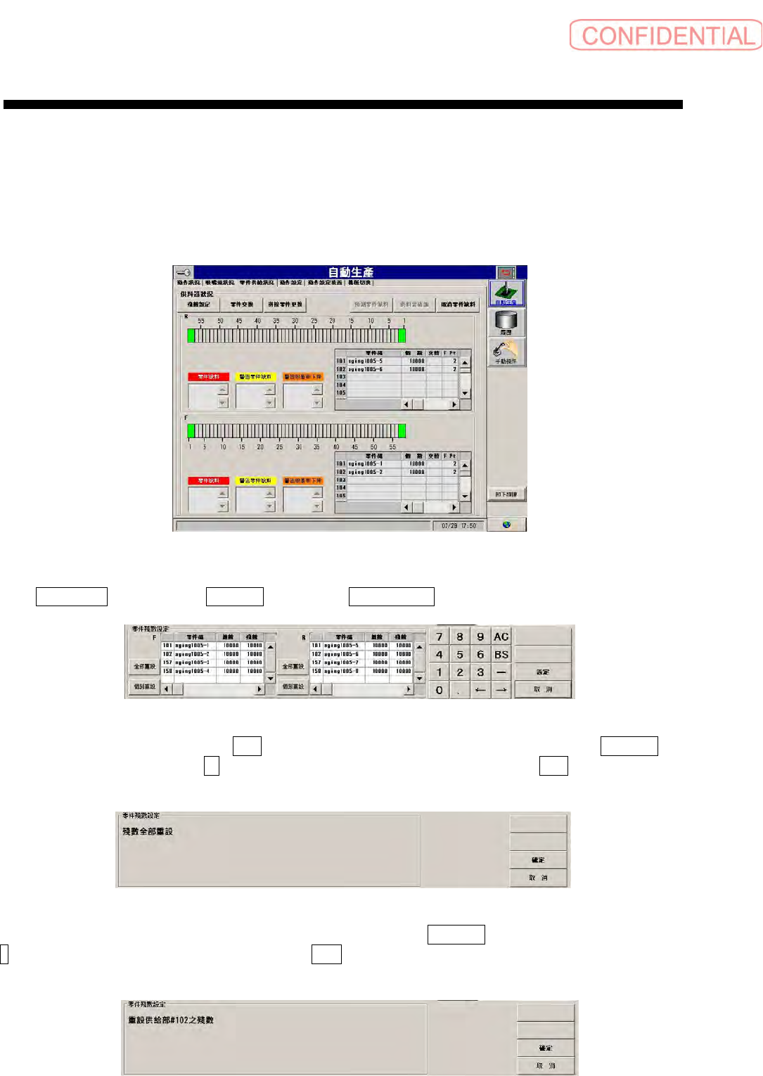 对于自动生产中的各供给部设定零件残数。
