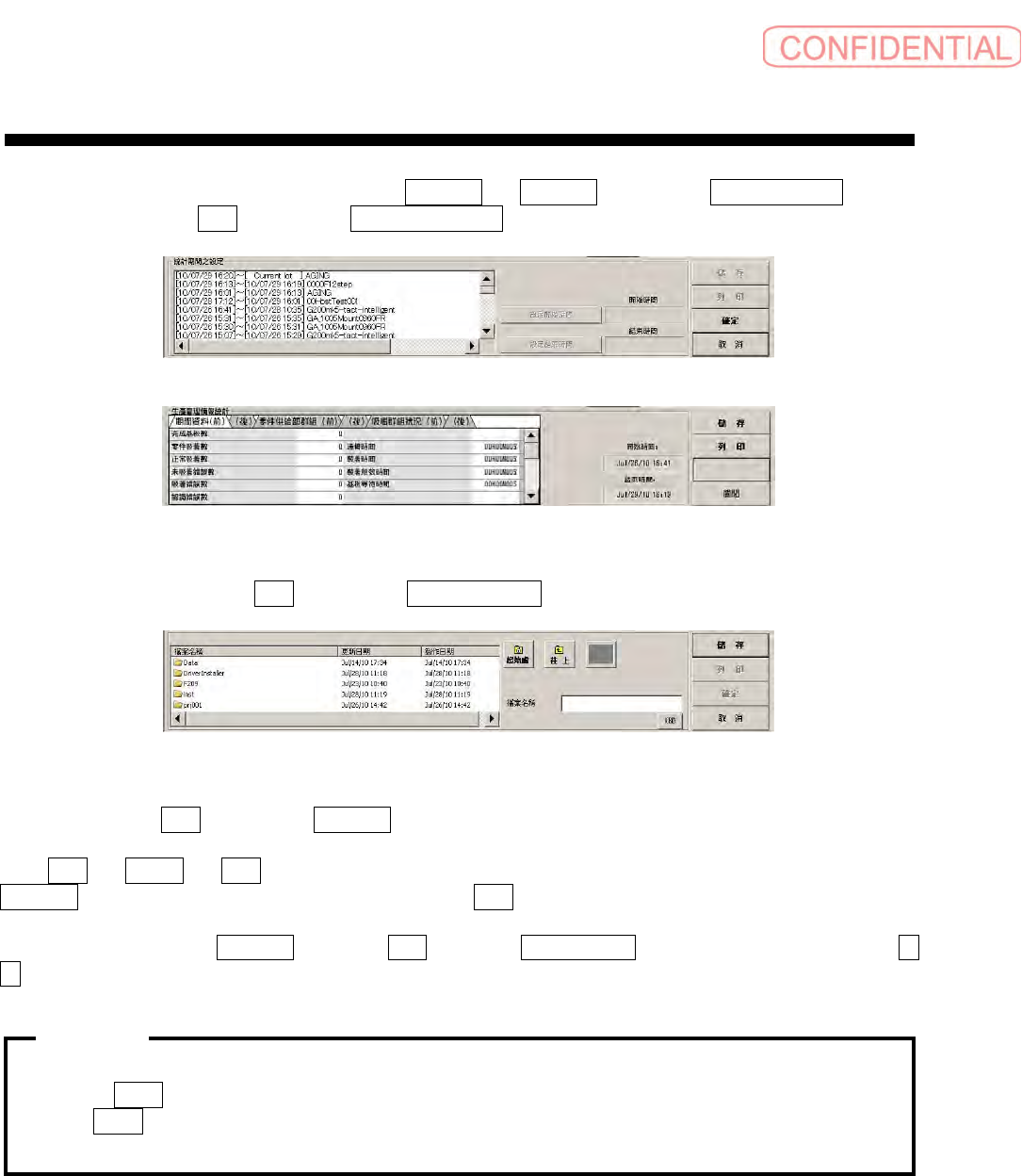 文件名称 请输入储存文件名称于文本对话框中并请点击 储存 键,表示现在机器全体的运转状况及选择机种群