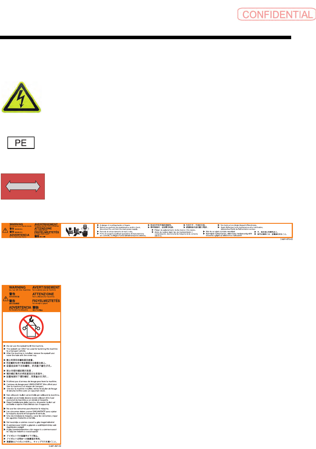 本机器所贴警告显示标签的种类和意思如下。请在理解了各种记号意思基础上,给予充分注意,进