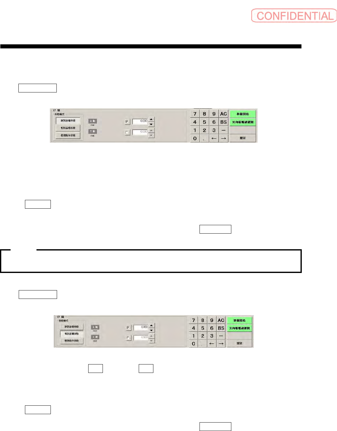 在绝对坐标移动及相对坐标移动的各个对话框中(上述○