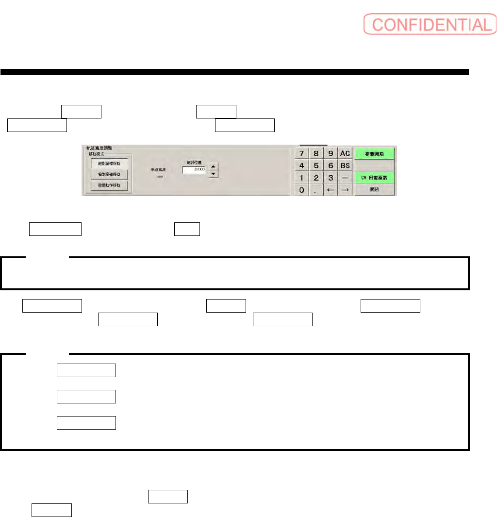 在绝对坐标移动及相对坐标移动的各个对话框中, 输入到达位置或移动量的数值, 移动输入的值后的轨道宽