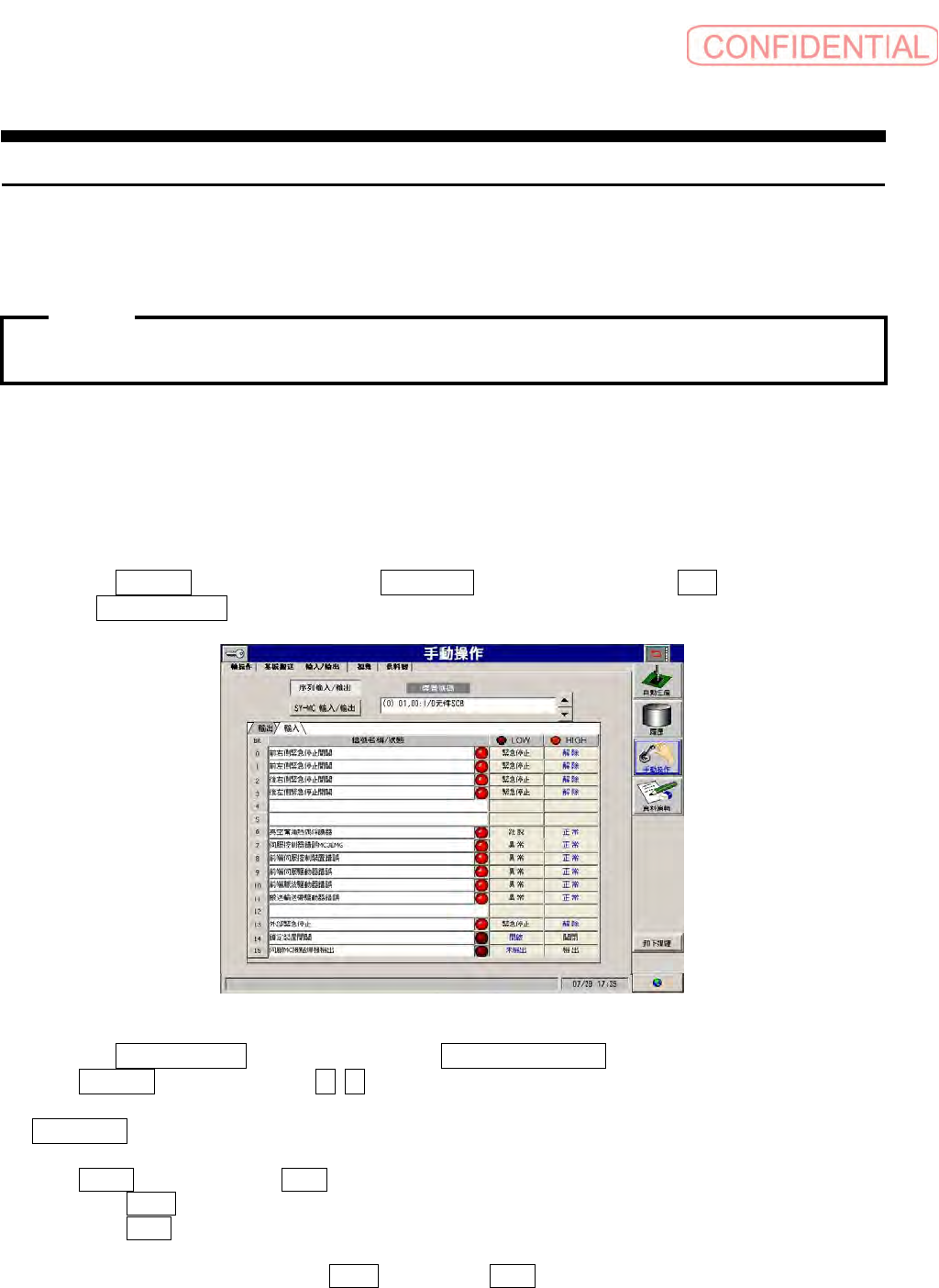 图 3.3.1 手動操作- 輸入/ 輸出( 手动操作- 输入/ 输出) 画面