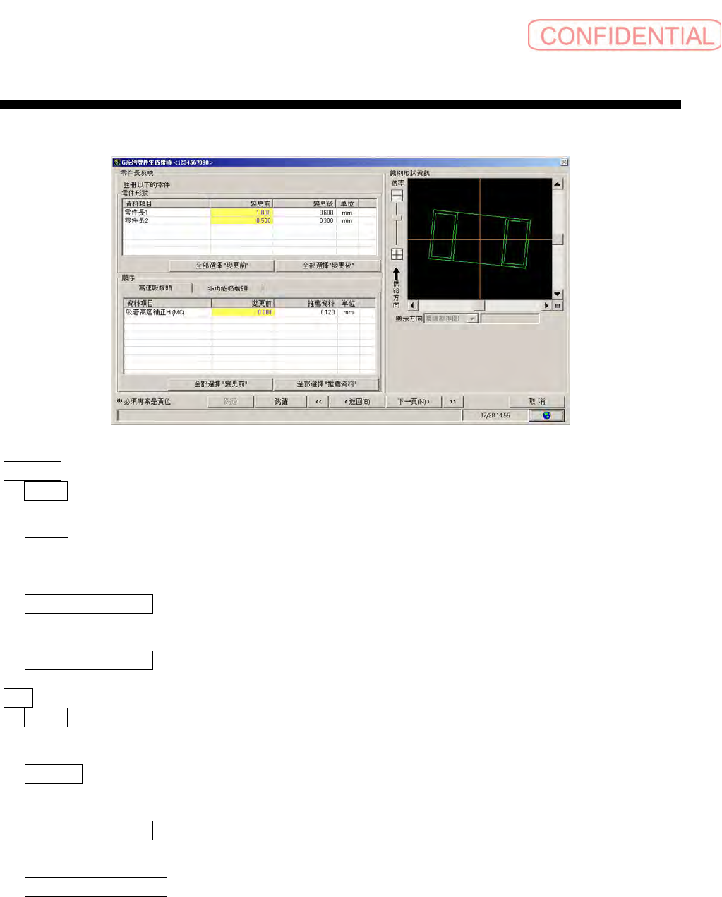 表示零件管理表的登录值或者在吸着·废弃画面的输入值。
