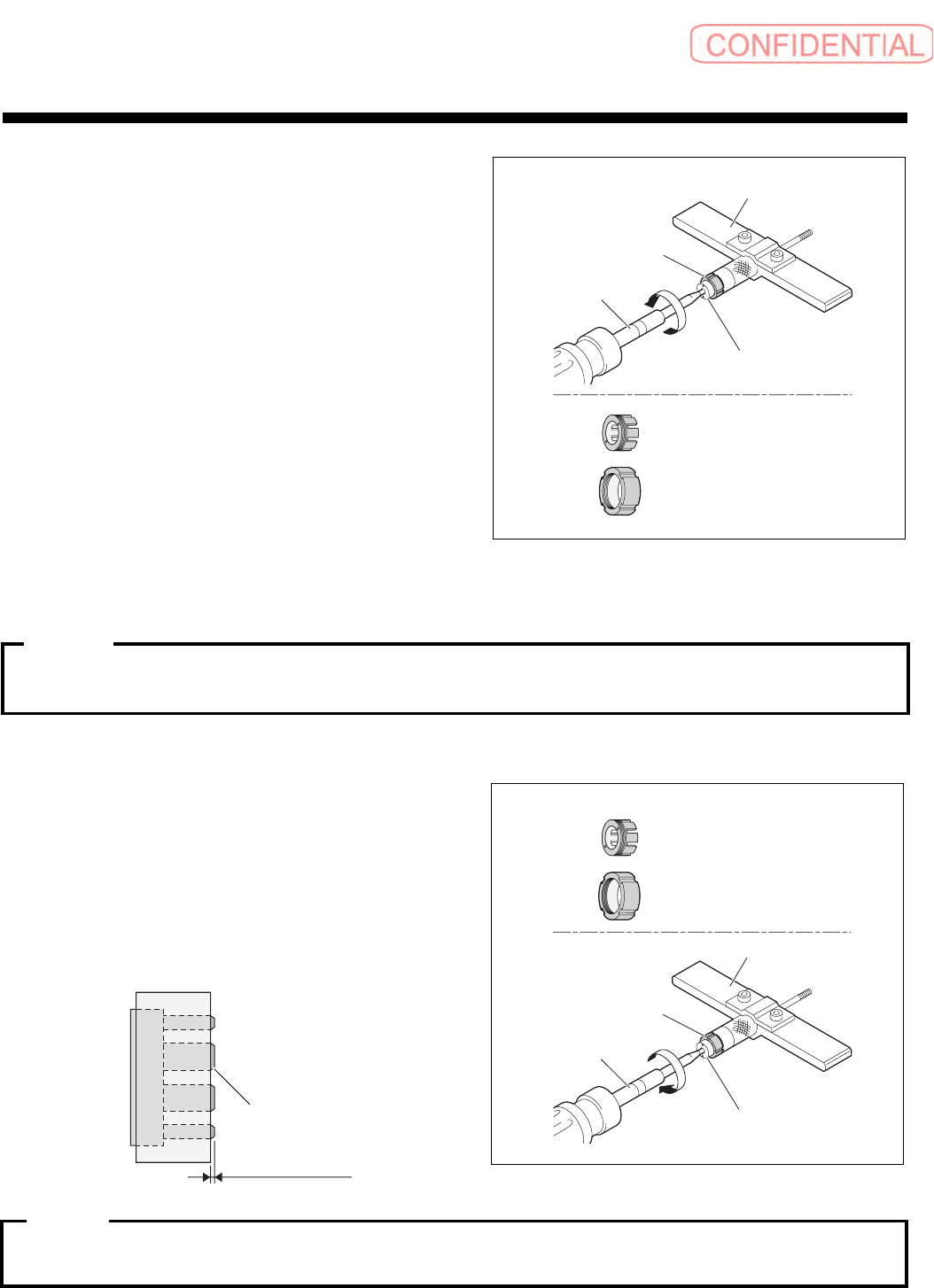 ③ 用手推压轴承托架治具 (2),同时从下方看扭矩螺丝刀并向逆时针方向转动,旋松一点