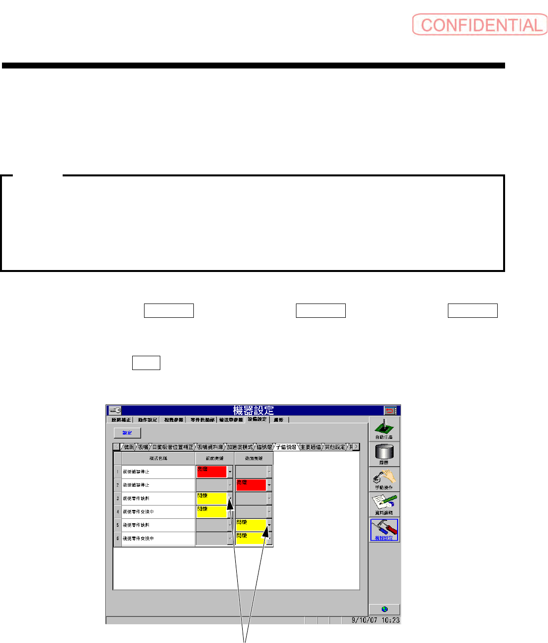 1. 按顺序点击菜单中的 機器設定 (机器设定)标签、設備設定 (设备设定)标签、子信號燈