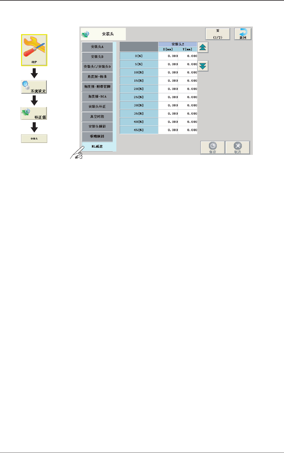 3OM-1752 2-45 1304-001 2.5 安装头 2.5.12 吸嘴别安装头回转中心 ( 各吸嘴安装头旋转中心 ) [1] [2] F3B45 界面展开