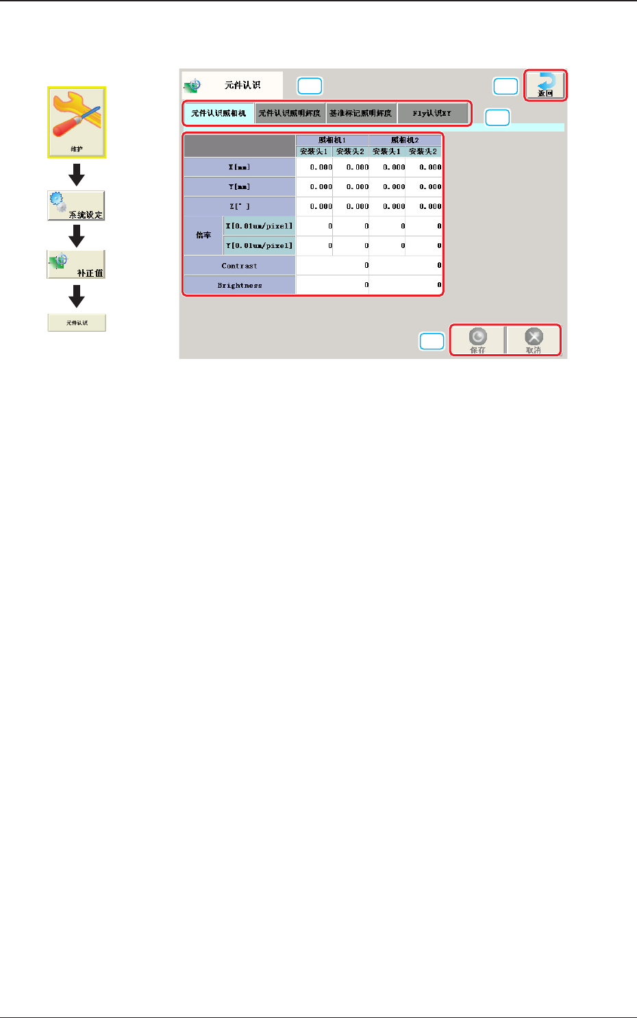 是设定线路板识别照相机倍率的数据,用来设定 1 像素相当于多少微米。