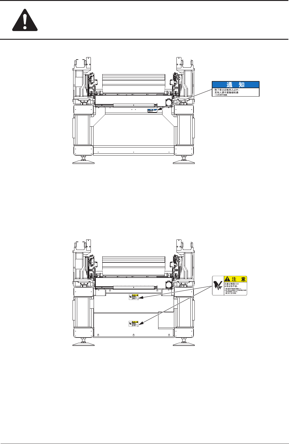 安全 -20 1OM-1752 1306-002 5. 本装置的警告标签 01-0330- ヘッドブロックに 手をつくな 通 知 (20) (21) (21) 请手不要接触安装头 维修时请按此处。 维修时请按此处。 请手不要接触安装头 1 1-0330 - 11-0314- 维修时请按此处。 11-0314- 维修时请按此处。 F1X8 为了使用上的安全起见