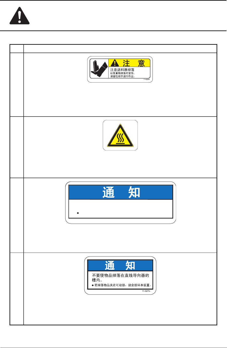 No. 警告标签及其说明