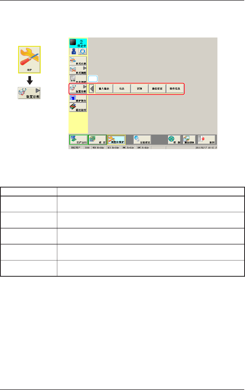 配置有以下按钮,可以显示执行装置诊断各功能的操作界面。