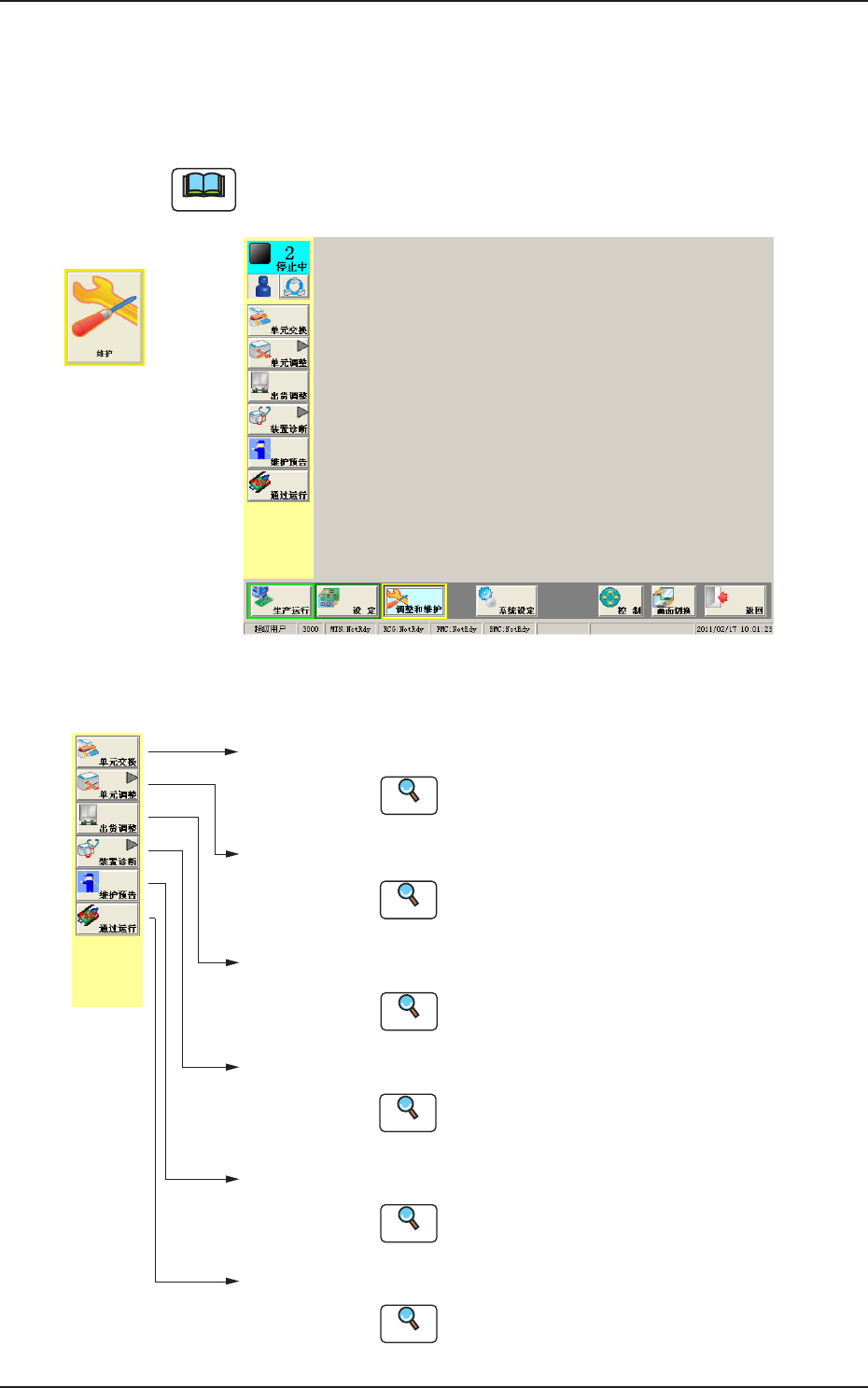 为显示实行装置维护各功能的操作界面,配置有 [ 维护 ] 主菜单按钮。