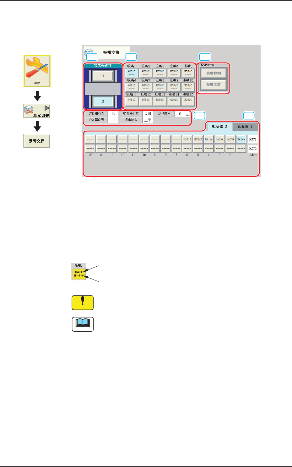 按下各吸嘴的相应按钮,选择要交换的吸嘴。