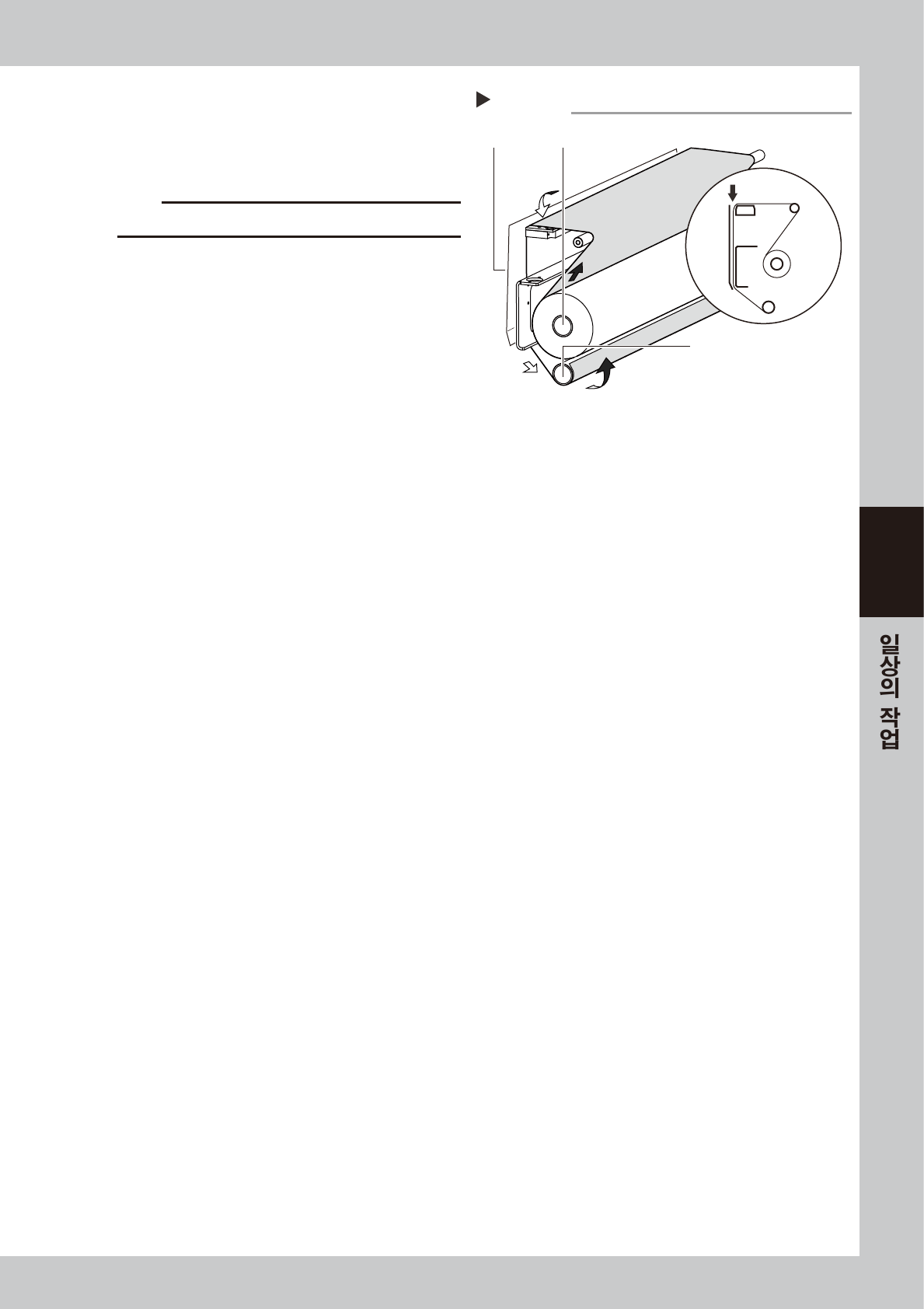 감는쪽 ( 하부 ) 롤을 빼서 롤 페이퍼를 잘라 주십