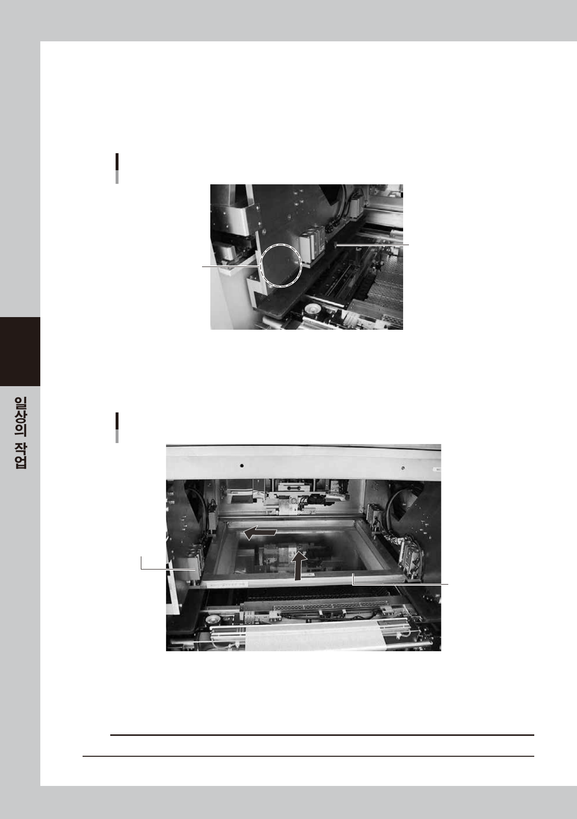 「스퀴지 이동」을 선택해 주십시오 . DOOR LOCK 램프가 소등되면 , 안전커버를 오픈할 수 있습니다 .