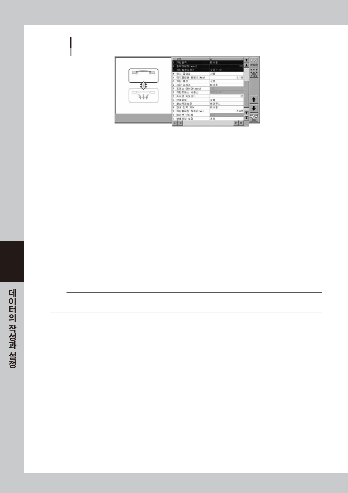 기판의 틀을 위에서 누르는 기판플랩의「사용」「미사용」을 설정합니다 . 보통은「사용」으로 설정합니다 . 기판플랩을 사