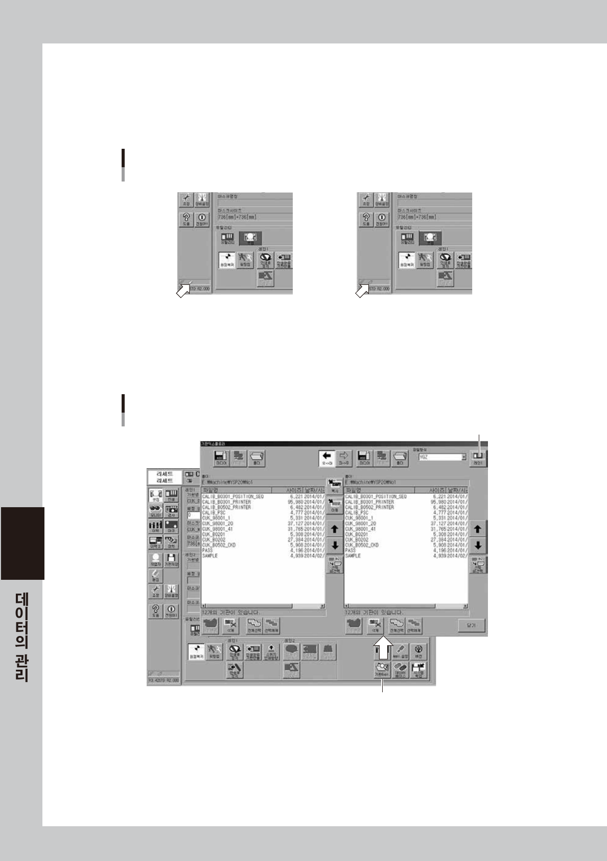 좌우 어느쪽의 리스트에서 기판데이터를 복사해도 상관없습니다만 , 복사할 방향을 반드시 확인해 주십시오 . (기판 익스플로러