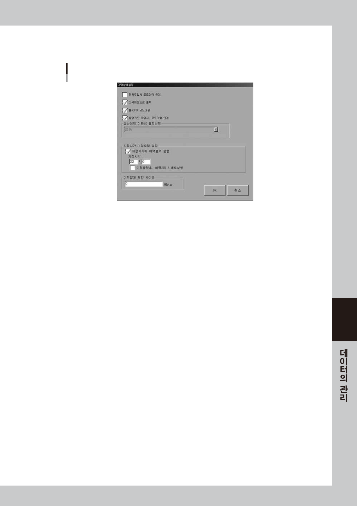 지정시간 이력출력 설정