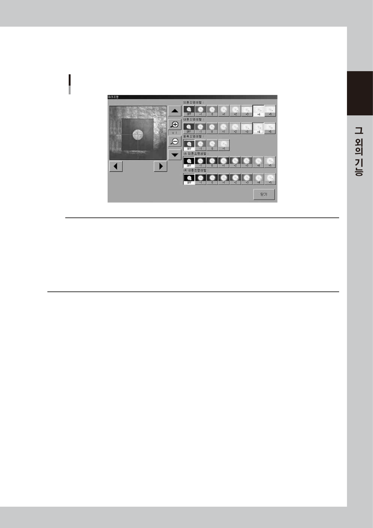 비젼화면에 목표물이 선명하게 표시되지 않을 경우는 [ 마크조명 ] 버튼을 누르고 조명레벨을 조정해 주십
