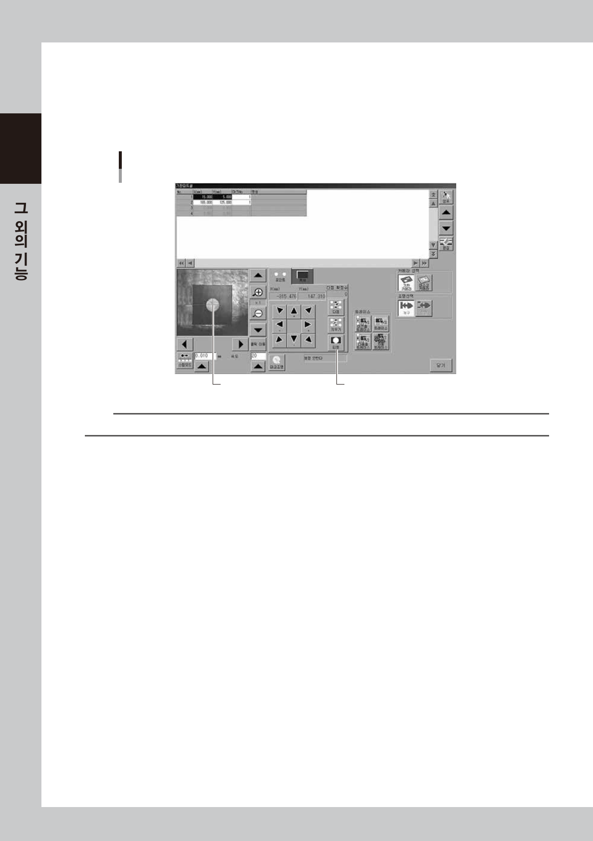 목표물의 중심을 화면의 크로스 라인의 교점에 맞추고 [ 티칭 ] 버튼을 누릅니다 . 목표물의 중심좌표
