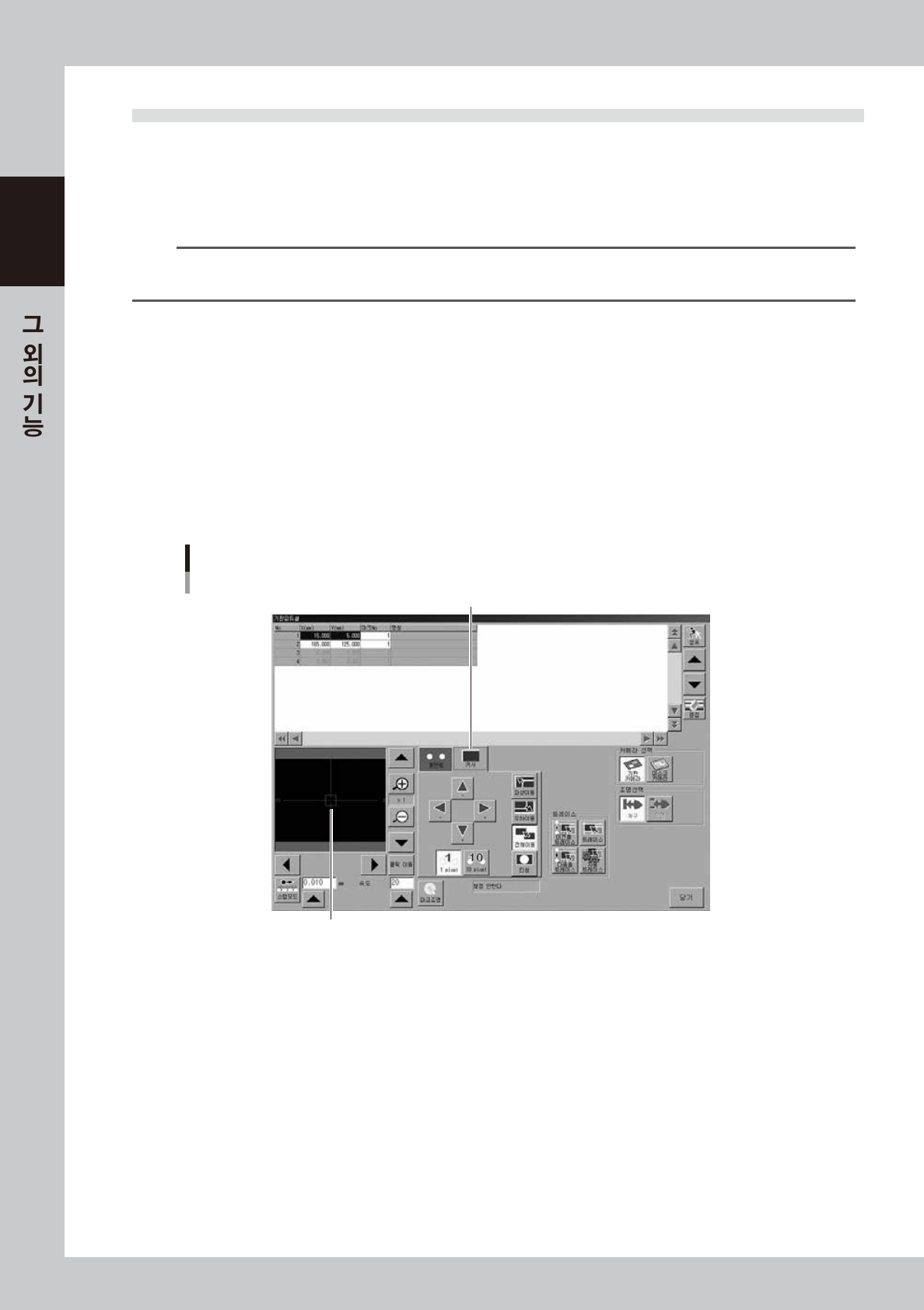 비젼화면에 목표물이 선명하게 비치지 않을 경우는 [ 마크조명 ] 버튼을 누르고 포인트 티칭과 같은 요령