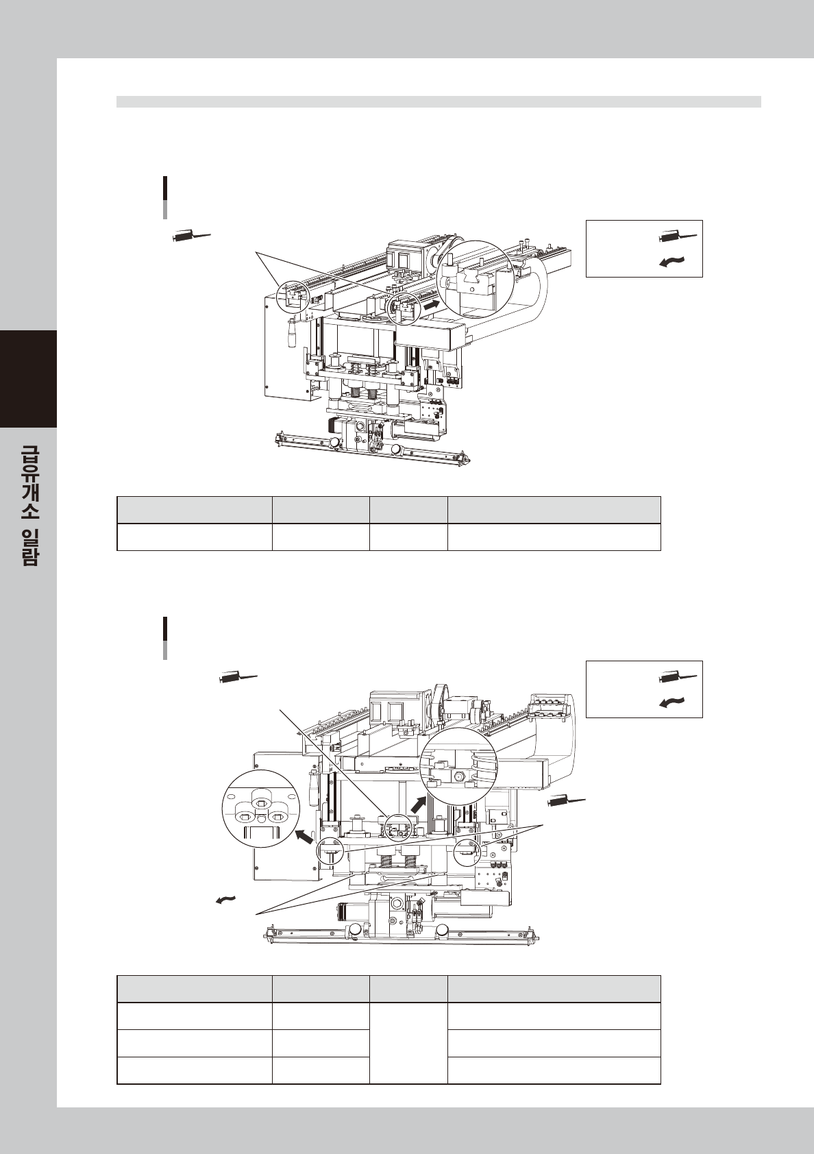 3-4 3 2.2 인쇄헤드부 2.2. 1 S Y 축 SY축의 급유개소 각 테이블 SY축 가이드부 구리스 니플 구리스 건 : 손으로 도포 : 57 303- N3-00 급 유부위 급유개 소 주기 작 업방법 SY 축가이드 2( 각테 이블 ) 매월 구 리스건 2.2.2 SZ 축 SZ축의 급유개소 각 테이블 SZ축 볼스크류부 구리스 니플 리니어 부쉬 SZ축 가이드부 구리스 니플 구리…